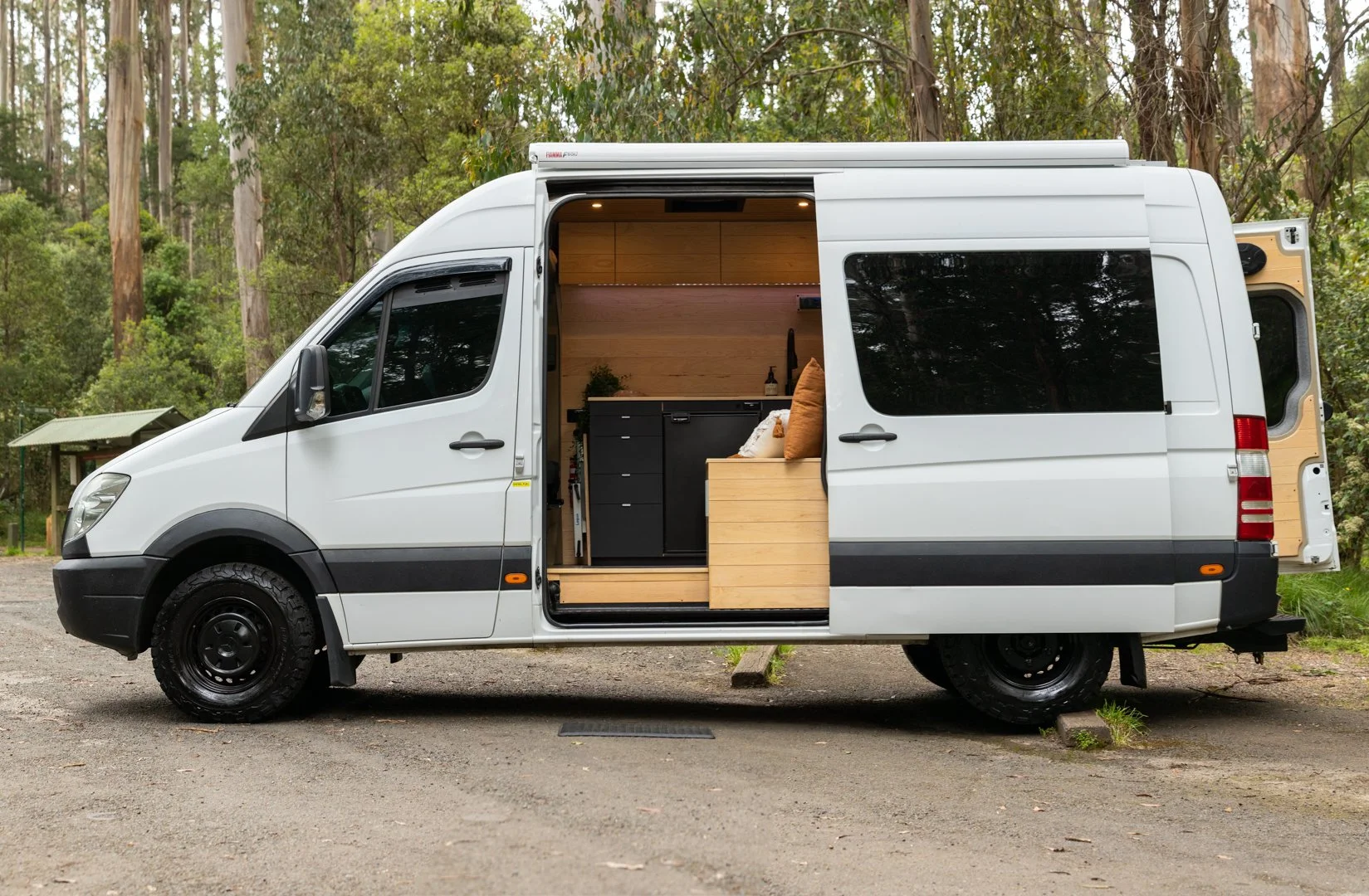 Florence is a 144 MWB high roof Sprinter. Fully off-grid and self-contained.